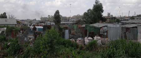 Das Leben der Menschen, die hier wohnen, ist von wirtschaftlicher Armut, Kriminalität, Mangel an Trinkwasser und Hygiene, ausbeuterischen Mietverträgen für viel zu enge Behausungen und von fehlendem Abfallmanagement geprägt. Hier leben auf circa fünf Quadratkilometern um die 45.000 Menschen, meist in Wellblechhütten. Von ihnen sind, Schätzungen zufolge, über ein Viertel HIV-positiv (laut WHO liegt die Häufigkeit von HIV-Infektionen in der gesamten kenianischen Bevölkerung zwischen 7,1 und 8 Prozent).
